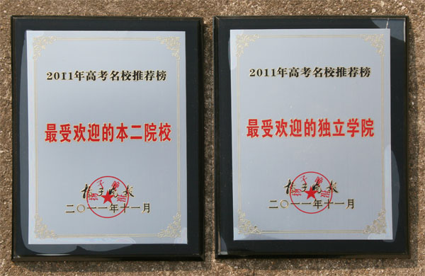11月10日,在由扬子晚报与中国名校网共同举办的“2011年高考名校推荐榜”颁奖大会上,我院荣获“最受欢迎的本二院校”、“最受欢迎的独立学院”称号。
