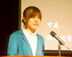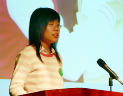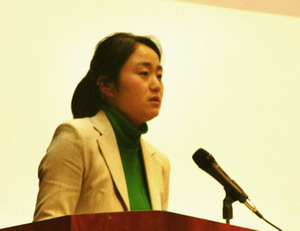 “天使之城”爱心会馆社长李丽娟同学在汇报 |