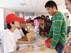 成贤学院青年志愿者中心的同学活跃在迎新的各个场合,热情地为前来报到的学生和家长提供服务,得到了家长们的赞许。