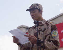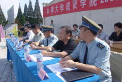 南京94840部队空军训练团刘洪涛副团长宣布了这次军训计划。接着,空军训练团蒋家慈教官代表全体教官,对成贤学院1400多名2005级新生的到来表示热烈地欢迎,并保证要以身作则,严格要求,严格训练,坚决完成这次军训任务。 2005级李秋辰同学代表全体新生在大会上表示了不怕苦,不怕累,加强组织纪律性,用刻苦的训练,磨砺自己意志和毅力的决心。