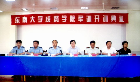 成贤学院院长左惟、成贤学院副院长姚灼云等出席了开训典礼。空军训练团大队长潘翔首先宣布了军训的计划和纪律,教官代表和学生代表先后发言,成贤学院常务副院长程明山在讲话中也对全体同学提出了明确要求,开训典礼由空军训练团政治处主任童军主持。空军训练团训练处处长高诩也在主席台就座。
