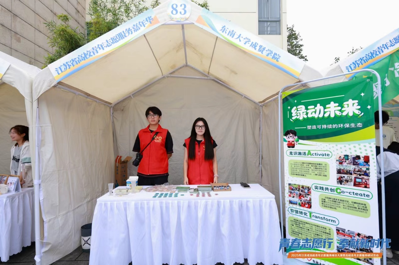 路演答辩期间,402cc永利官网参赛成员积极参与江苏省高校志愿服务嘉年华,现场展示了志愿实践成果与活动成效,同时向外界发放了带有学校特色虚拟IP形象“益小青”的纪念品,得到专家与参观者的广泛好评。
