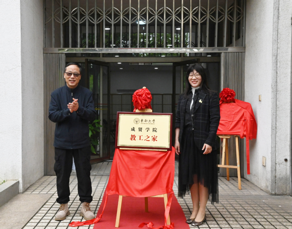 (东南大学工会副主席陆娟与成贤学院工会主席沈冬生为“教工之家”揭牌)
