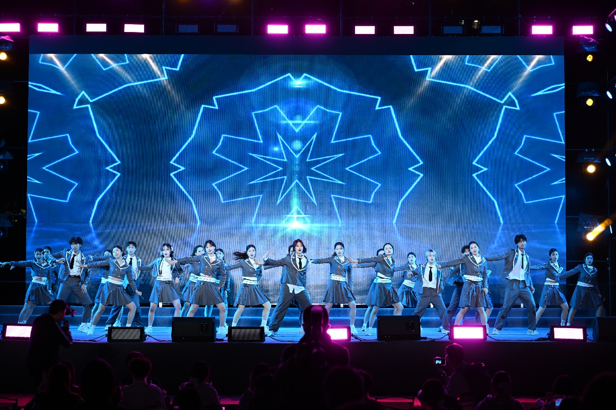 电声社动感十足的热场演出率先点燃全场氛围,新生们怀揣期待有序入场。随着开场舞《少年之名》的欢快旋律响起,青春的活力在草坪上肆意绽放,晚会正式拉开帷幕。