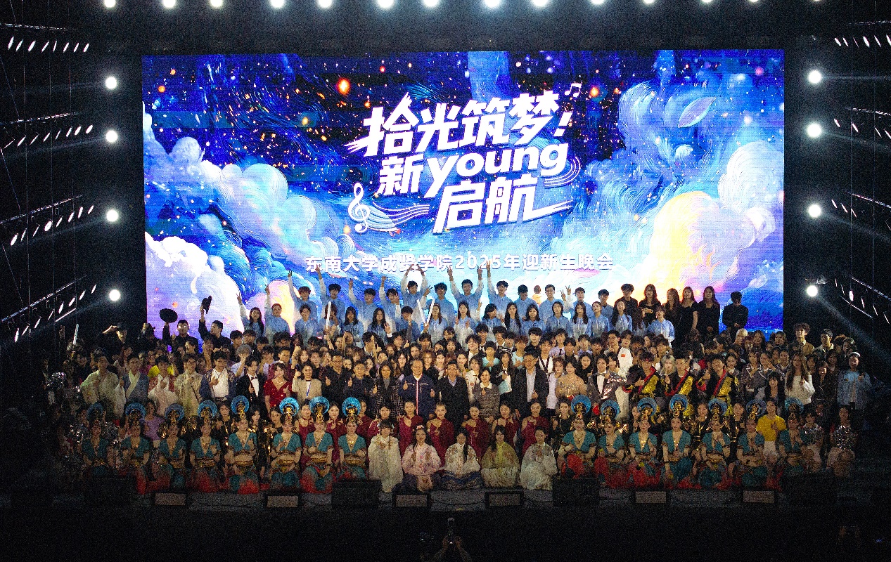第二篇章“新Young启航·逐梦成贤”以“成长”为题,用热爱诠释逐梦的坚定。舞蹈《开天》以极具张力的舞姿,演绎青春无畏的闯劲;歌曲串烧《胡广生》《倔强》在深情叙事与励志呐喊间切换,唱出青年的赤子之心;器乐《金陵四季》用旋律勾勒古都南京的四季盛景,让地域文化与校园情怀相融;2025级新生辅导员惊喜亮相舞蹈《爱你》,用灵动舞姿传递温暖期许;歌舞《天地龙鳞》更以恢弘气势展现祖国山河的壮阔与社会和谐的图景,将现场氛围推向高潮。