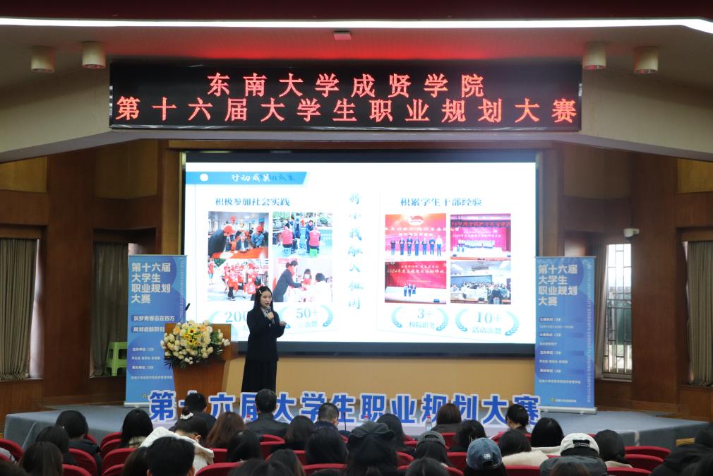 决赛现场,两个赛道选手分别围绕个人职业目标展开精彩展示。成长赛道选手侧重学业规划、能力发展与长期职业愿景,展现出系统性的成长路径设计与阶段目标安排;就业赛道选手则更聚焦求职准备、岗位匹配与就业策略,体现实战性与行业适应力。在人工智能深刻重塑职业图景的背景下,很多选手在规划中主动融合“人工智能+”思维,关注新兴行业与跨学科能力,展现出成贤学子敏锐的时代感知与前瞻性的成长视野。评委从规划科学性、逻辑性、创新性以及选手现场表现等多个维度进行综合评议与提问,进一步引导选手深化对职业发展与自我实现的理解。