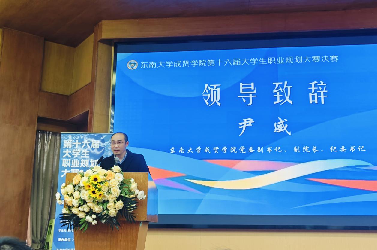 12月15日下午,由学生处、教务处、校团委主办,经济管理学院承办的402cc永利官网第十六届大学生职业规划大赛决赛在真知馆报告厅成功举办。学校党委副书记、副院长、纪委书记尹威出席活动,南京工业大学学生工作处副处长齐鹏、东南大学就业指导中心副主任丁菡,学生处处长施杰、团委副书记刘静、教务处处长助理吴龙龙担任评委,相关职能部门和二级学院负责人、辅导员和两百余名学生现场观摩了比赛。