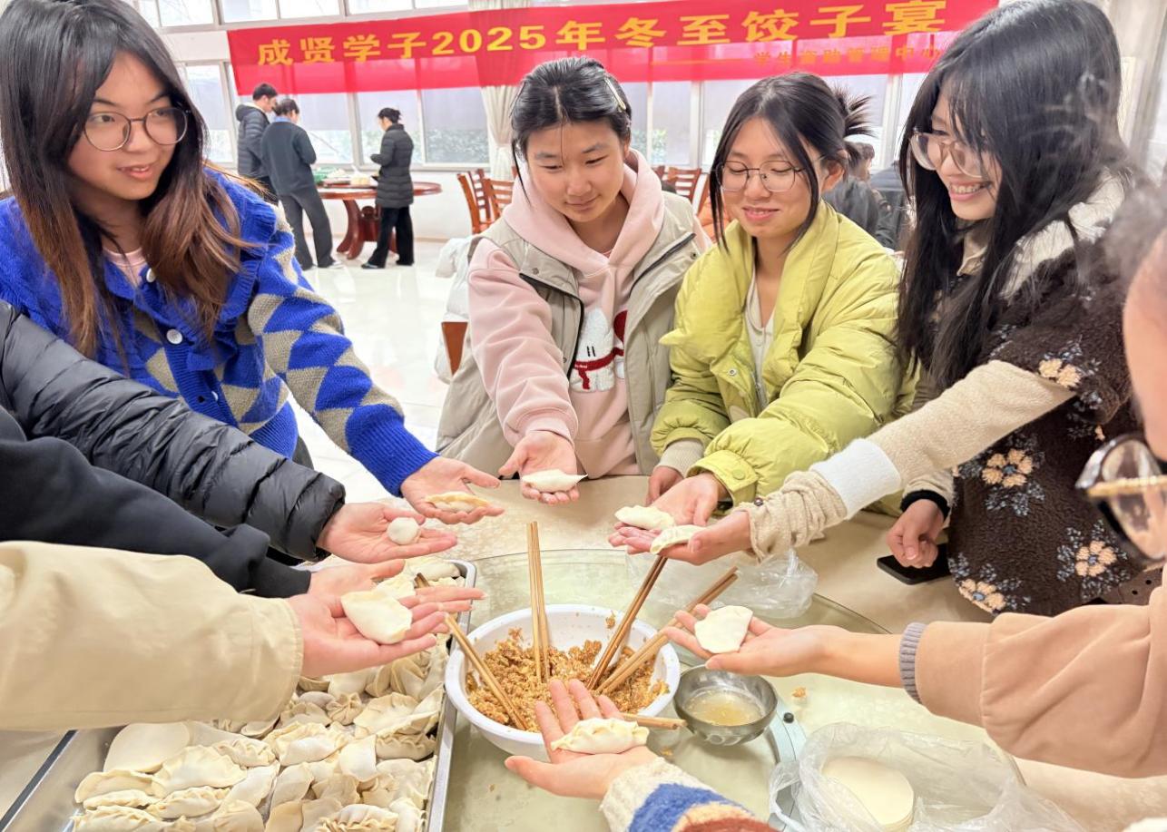中华民族重要的传统节气冬至,承载着阴阳“交子之时”的文化意蕴,满含对春日的期盼与对团圆的向往。为弘扬中华优秀传统文化,将对家庭经济困难学生的关怀精准落到实处,学生资助管理中心于12月19日精心组织“冬寒情暖 爱满成贤—冬至饺子宴”活动。学校党委副书记、副院长尹威,学生处处长施杰,学生处副处长颜秉明以及各学院资助工作负责老师与同学们欢聚一堂,共话佳节。