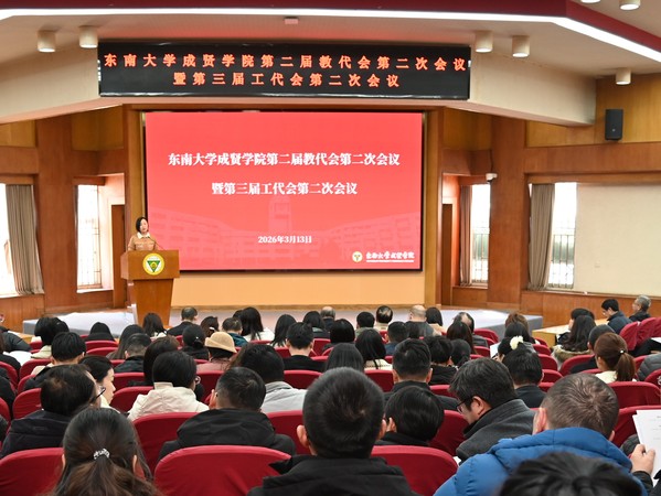 黄学良常务副院长在报告中强调,2026年是“十五五”规划的开局之年,学校将紧扣建设特色鲜明的高水平应用型大学这一奋斗目标,聚焦立德树人、人才强校、数智转型、专业优化、科研创新、安全稳定和综合治理等七大重点任务,持续深化综合改革,着力提升办学内涵,统筹推进教育、科技、人才一体化发展,争创江苏省优质特色应用型本科高校。他希望全体成贤人在新的一年里,锚定目标、守正创新、真抓实干,以高质量发展的实际成效服务教育强国建设和区域经济发展,奋力谱写成贤学院转型跃升新篇章。